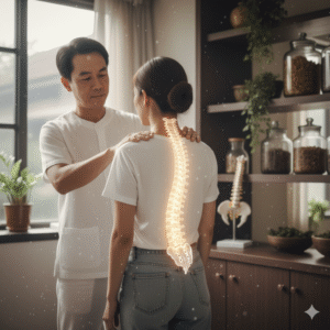 Áp dụng các kỹ thuật bấm huyệt để điều chỉnh các lệch lạc, cân bằng lại cột sống và tư thế đứng, ngồi.